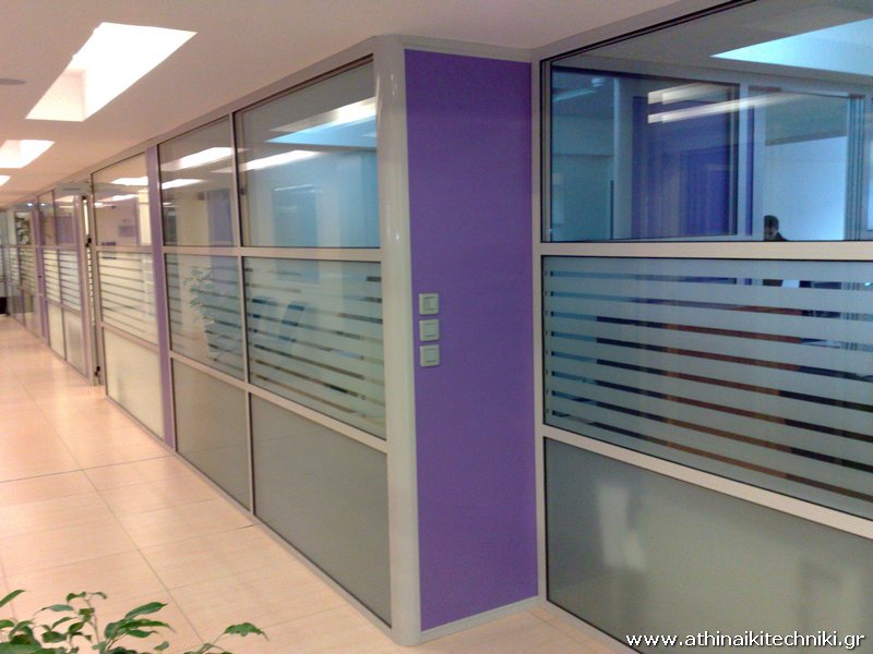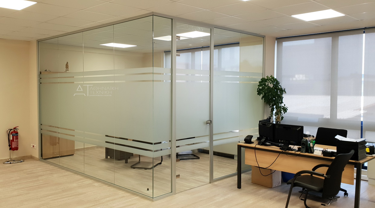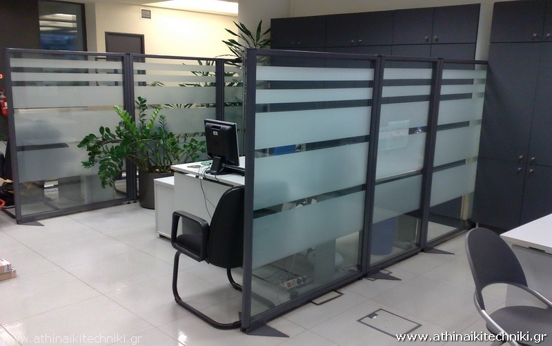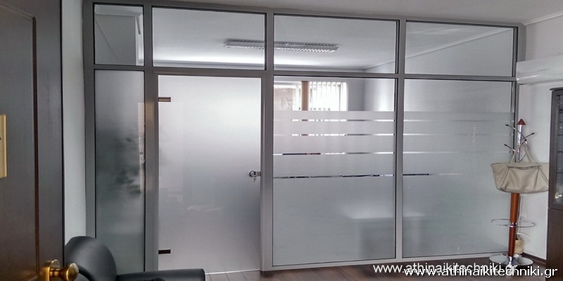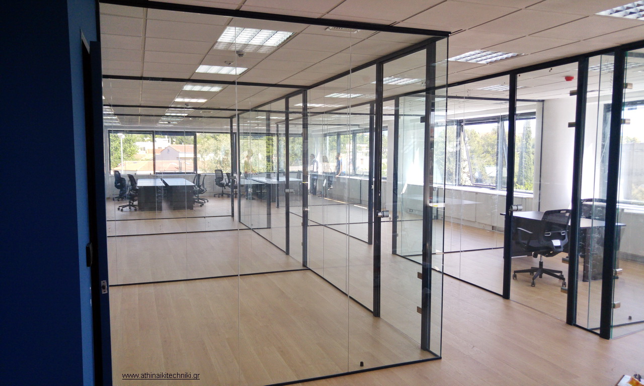 Ο πιο αποτελεσματικός τρόπος διαμερισματοσης των γραφείων είναι οι κατασκευές διαχωριστικών από γυαλί διότι εξασφαλίζουν το μέγιστο φυσικό φως, αυτό δίνει στο χώρο μας μια αίσθηση πολύ κομψή και σύγχρονη με δυνατότητα να έχουν το λογότυπο της εταιρείας .Σημαντικό για τις αίθουσες συνεδριάσεων , ιδίως επειδή είναι δυνατό για να δείτε με μια ματιά αν το δωμάτιο είναι κατειλημμένη αν εργάζονται ή όχι. Αυτό εξοικονομεί πάρα πολλές διακοπές την ώρα της συνάντησης .