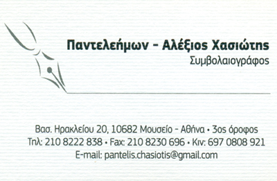 ΧΑΣΙΩΤΗΣ ΠΑΝΤΕΛΕΗΜΩΝ ΑΛΕΞΙΟΣ - ΣΥΜΒΟΛΕΟΓΡΑΦΟΣ - 2108222838 .