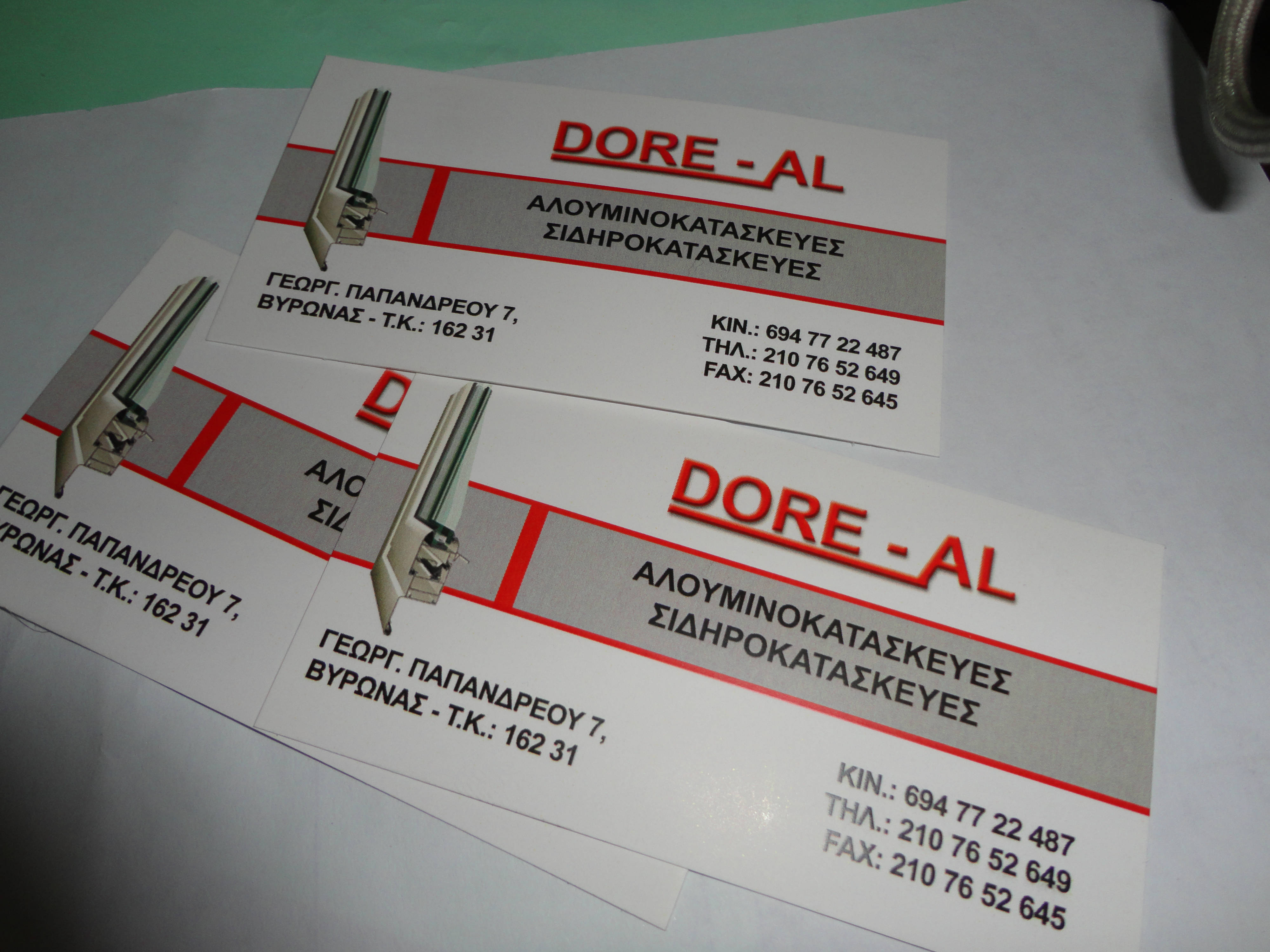 Η ατομική εταιρία DoreAL ξεκίνησε στις 01/04/2009 με νέες ιδέες σύγχρονες, στην περιοχή του Βύρωνα, και δραστηριοποιείται σε όλη την Ελλάδα. Είματε πιστοποιημένοι στην Alusystem (Alco Group) και ETEM.