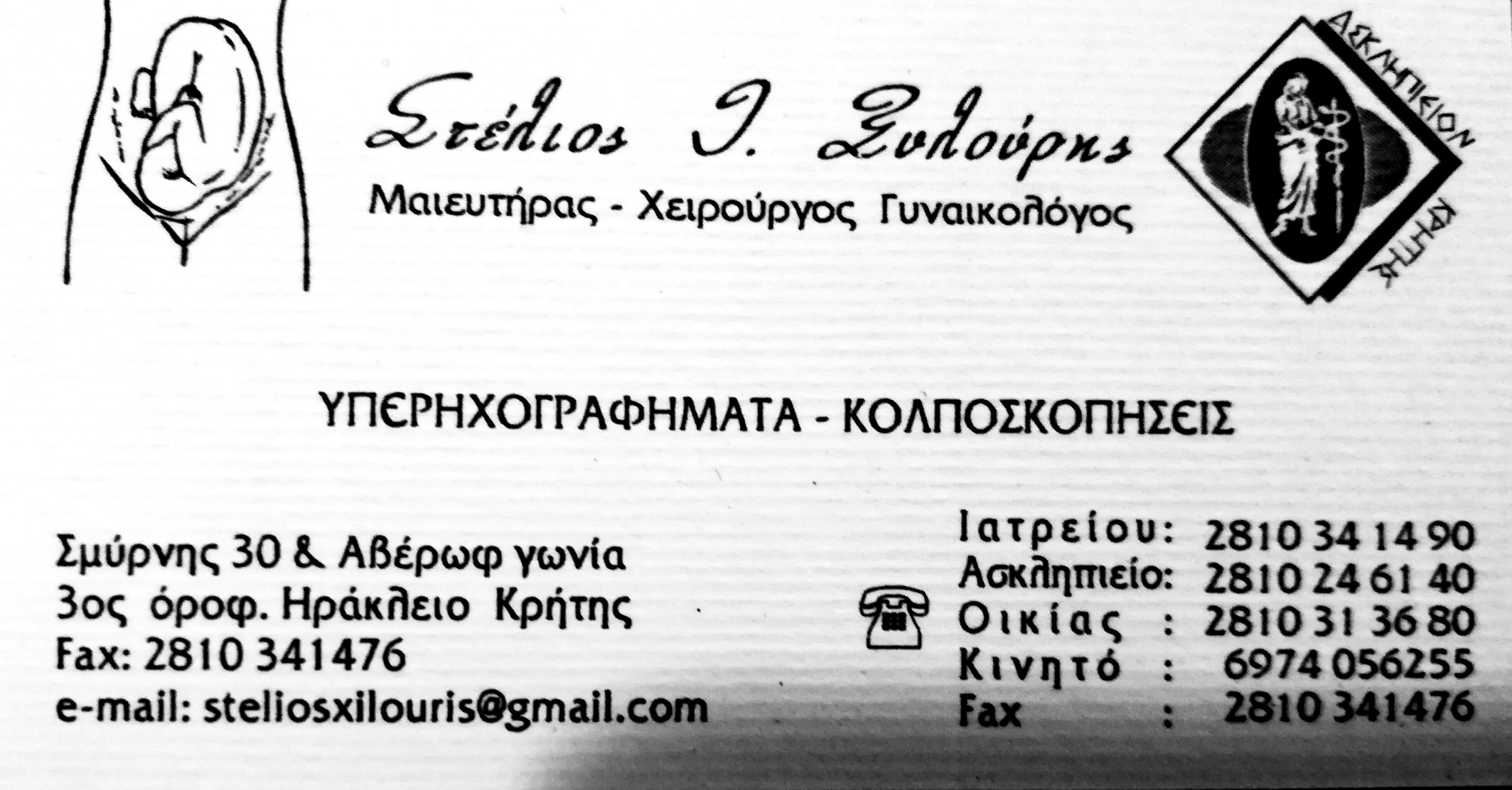 Το ιατρείο του χειρούργου μαιευτήρα- γυναικολόγου Ξυλούρη Στέλιου βρίσκεται στην οδό Σμύρνης 30 και Αβέρωφ γωνία στον 3ο όροφο στο Βαλιδέ Τζαμί (κέντρο) στο Ηράκλειο Κρήτης.