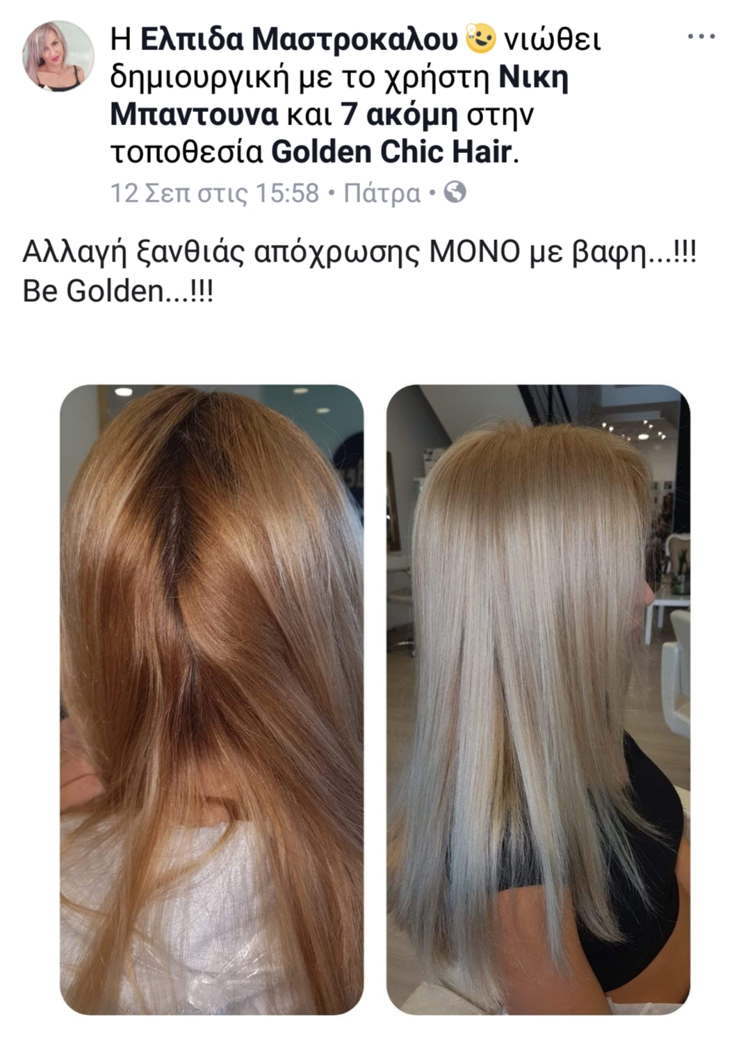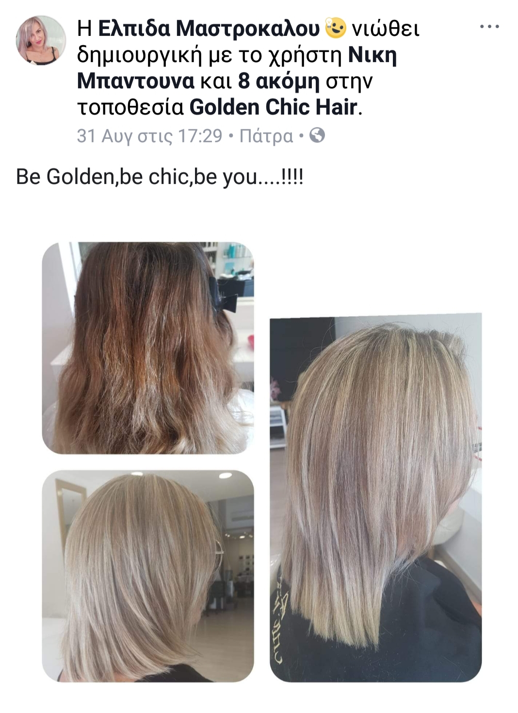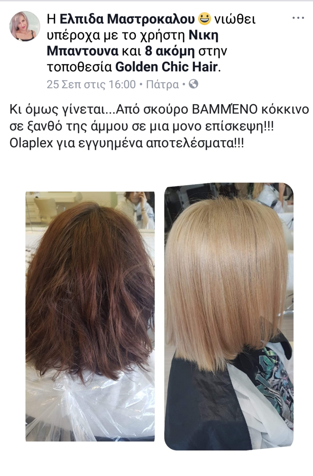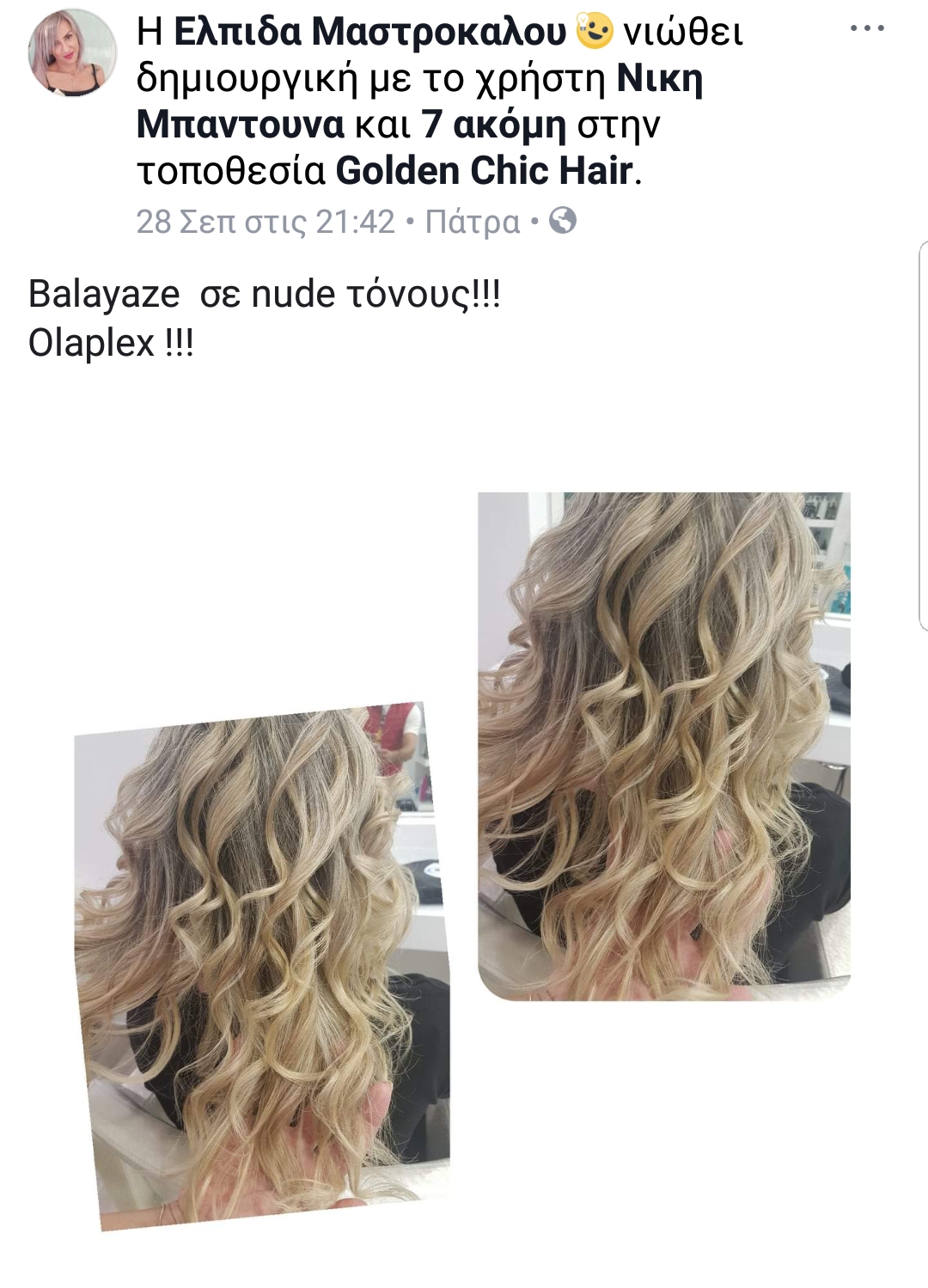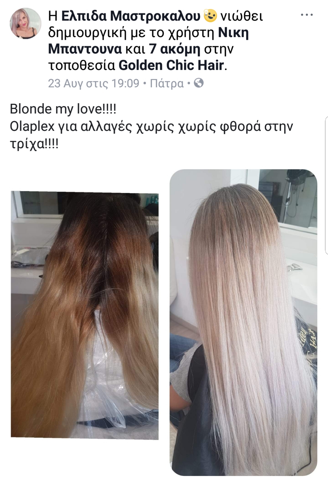 Κομμωτήριο Πάτρα Ελπίδα Μαστροκαλου χτένισμα Golden chic hair olaplex style hair color L'oreal Malibu blonde SCHWARZKOPF kms maroccanoil Μαλλιά shampoo sources