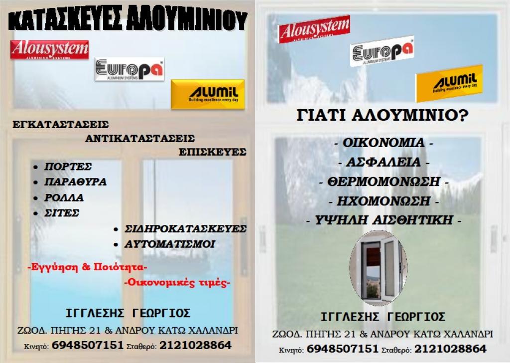ΚΑΤΑΣΚΕΥΕΣ ΑΛΟΥΜΙΝΙΟΥ ΣΙΔΗΡΟΥ ΧΑΛΑΝΔΡΙ ΧΟΛΑΡΓΟΣ ΑΓΙΑ ΠΑΡΑΣΚΕΥΗ ΑΘΗΝΑ ΑΤΤΙΚΗ ,ΑΛΟΥΜΙΝΟΚΑΤΑΣΚΕΥΕΣ ΧΑΛΑΝΔΡΙ ΧΟΛΑΡΓΟΣ ΑΓΙΑ ΠΑΡΑΣΚΕΥΗ ΑΘΗΝΑ ΑΤΤΙΚΗ ,ΚΟΥΦΩΜΑΤΑ ΑΛΟΥΜΙΝΙΟΥ ΧΑΛΑΝΔΡΙ ΧΟΛΑΡΓΟΣ ΑΓΙΑ ΠΑΡΑΣΚΕΥΗ ΑΘΗΝΑ ΑΤΤΙΚΗ ,ΚΟΥΦΩΜΑΤΑ ΕΝΕΡΓΕΙΑΚΑ ΧΑΛΑΝΔΡΙ ΧΟΛΑΡΓΟΣ ΑΓΙΑ ΠΑΡΑΣΚΕΥΗ ΑΘΗΝΑ ΑΤΤΙΚΗ ,ΣΗΤΕΣ ΠΑΝΤΟΣ ΕΙΔΟΥΣ ΧΑΛΑΝΔΡΙ ΧΟΛΑΡΓΟΣ ΑΓΙΑ ΠΑΡΑΣΚΕΥΗ ΑΘΗΝΑ ΑΤΤΙΚΗ ,ΣΤΕΓΑΣΤΡΑ ΣΙΔΗΡΟΥ-ΑΛΟΥΜΙΝΙΟΥ ΧΑΛΑΝΔΡΙ ΧΟΛΑΡΓΟΣ ΑΓΙΑ ΠΑΡΑΣΚΕΥΗ ΑΘΗΝΑ ΑΤΤΙΚΗ ,ΚΑΓΚΕΛΑ ΧΑΛΑΝΔΡΙ ΧΟΛΑΡΓΟΣ ΑΓΙΑ ΠΑΡΑΣΚΕΥΗ ΑΘΗΝΑ ΑΤΤΙΚΗ ,ΓΚΑΡΑΖΟΠΟΡΤΕΣ ΧΑΛΑΝΔΡΙ ΧΟΛΑΡΓΟΣ ΑΓΙΑ ΠΑΡΑΣΚΕΥΗ ΑΘΗΝΑ ΑΤΤΙΚΗ