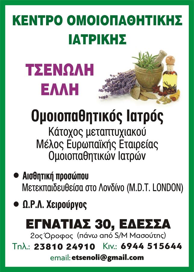 ΤΣΕΝΩΛΗ ΕΛΛΗ ΩΡΛ ΟΜΟΙΟΠΑΘΗΤΙΚΟΣ ΚΑΙ ΑΙΣΘΗΤΙΚΗ ΠΡΟΣΩΠΟΥ
