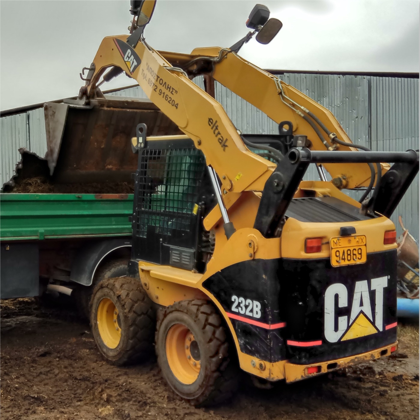 Φορτηγό, ελαστιχοφόρος μινι φορτωτής(διαβολάκι), τσαπάκι, μηχάνημα Jcb, κομπρεσέρ - σφυρί, μηχάνημα μίξης σκυροδέρματος (μπετονιέρα).