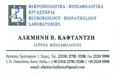 ΚΑΦΤΑΝΤΖΗ ΑΛΚΜΗΝΗ ΙΚΕ -ΜΙΚΡΟΒΙΟΛΟΓΙΚΟ ΕΡΓΑΣΤΗΡΙΟ