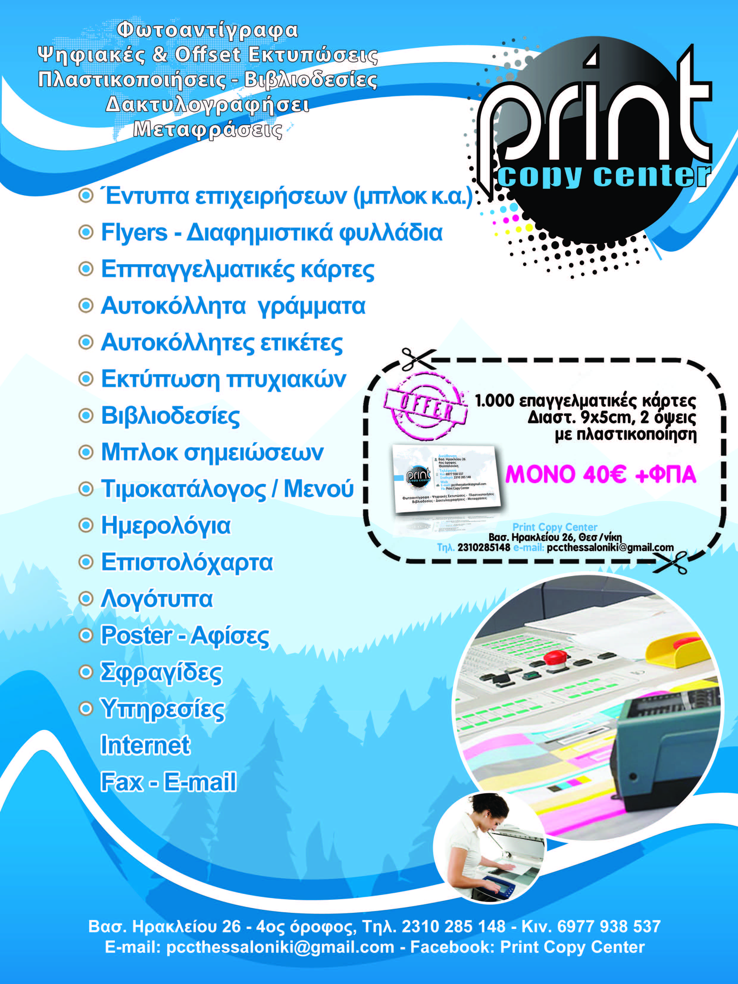 Φωτοαντίγραφα και μεταφράσεις, Θεσσαλονίκη. Μεταφράσεις κειμένων, Θεσσαλονίκη. Πλαστικοποιήσεις - βιβλιοδεσίες, Θεσσαλονίκη. Δακτυλογραφήσεις, Θεσσαλονίκη. Γραφιστικές τέχνες, Θεσσαλονίκη. Διαφημιστικά έντυπα, Θεσσαλονίκη.