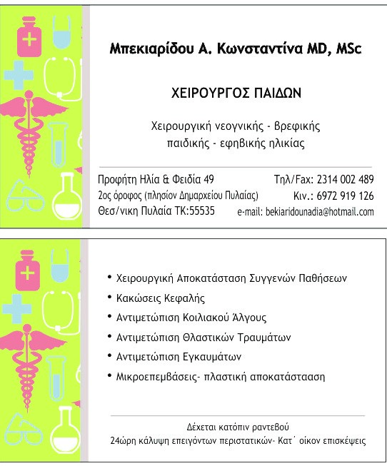 Μπεκιαρίδου Κωνσταντίνα. Α. Χειρουργός Παίδων