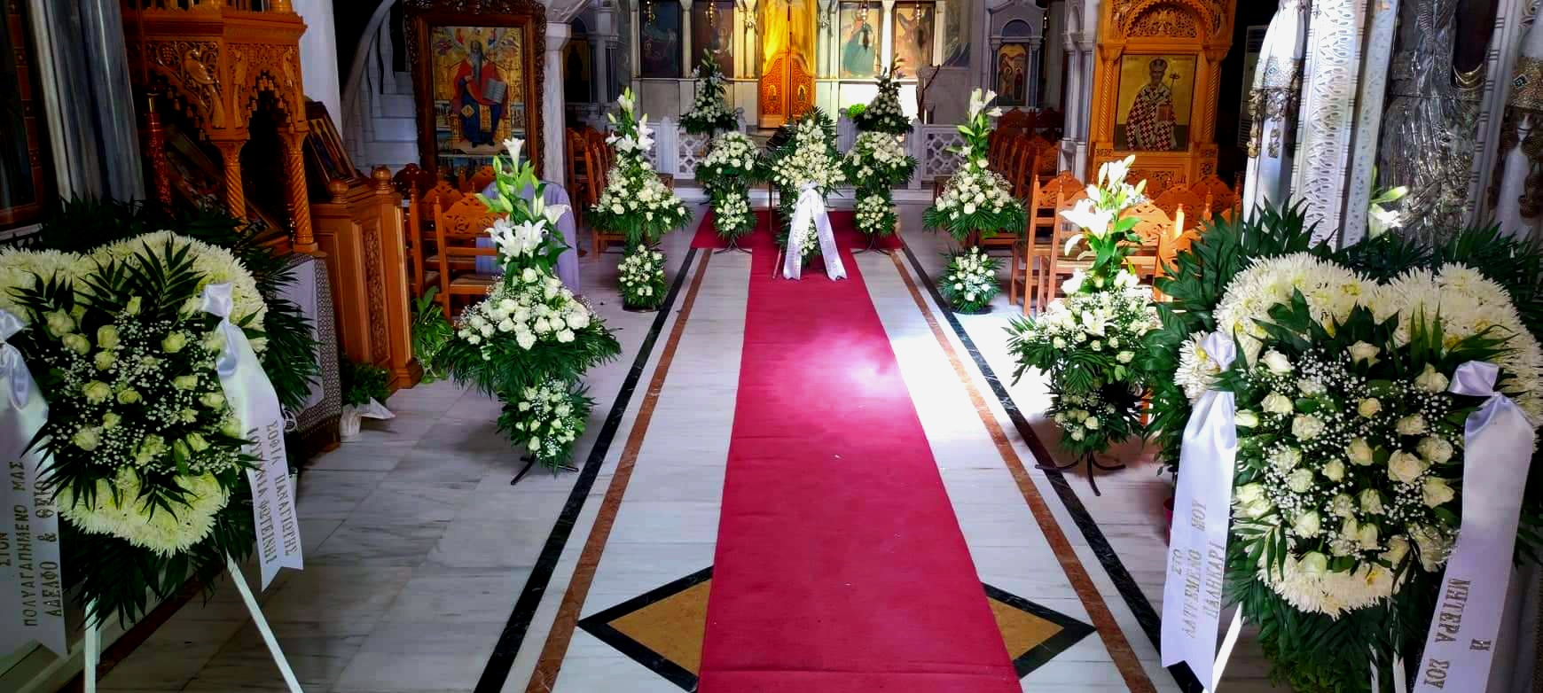 Φροντίζουμε για όλες τις απαιτούμενες διαδικασίες, από το στολισμό της εκκλησίας και τα στεφάνια έως τις τοιχοκολλήσεις των αγγελτηρίων, στην περιοχή που θα μας υποδείξετε.
