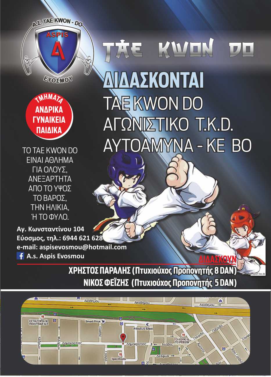 ΑΣΠΙΣ ΕΥΟΣΜΟΥ ΑΘΛΗΤΙΚΟΣ ΣΥΛΛΟΓΟΣ TAE KWON DO - ΦΕΪΖΗΣ ΝΙΚΟΛΑΟΣ - 2313076029 - 6944621628