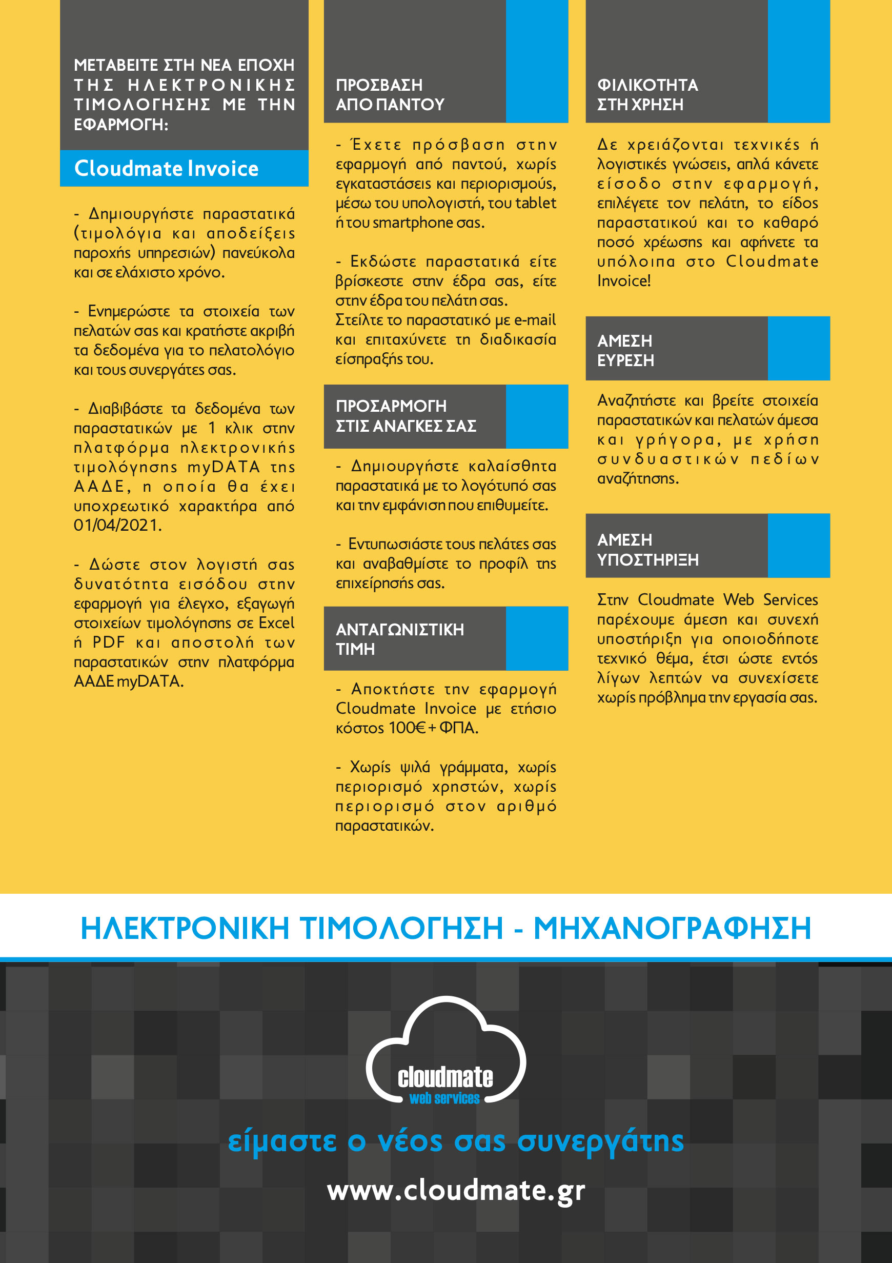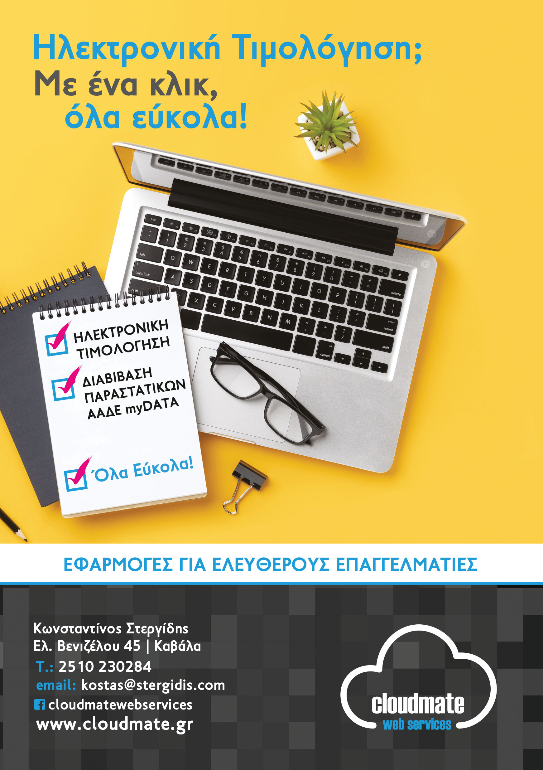 Cloudmate Web Services, Καβάλα | Ηλεκτρονική Τιμολόγηση - Διαδικτυακό λογισμικό για δικαστικούς επιμελητές, δικηγόρους, φυσιοθεραπευτές και άλλους επαγγελματικούς κλάδους - Ανάπτυξη και φιλοξενία ιστοσελίδων και ηλεκτρονικών καταστημάτων.