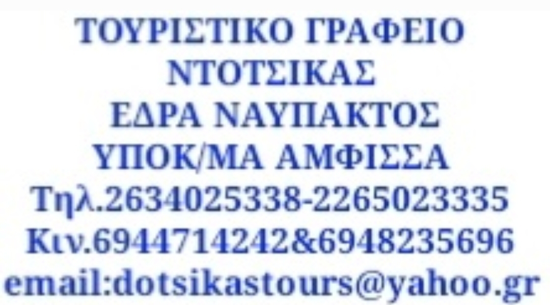 Γραφείο Ταξιδίων - Ναύπακτος, Αιτωλοακαρνανία-ΤΑΞΙΔΙΩΤΙΚΟ ΠΡΑΚΤΟΡΕΙΟ-ΓΡΑΦΕΙΟ ΕΣΩΤΕΡΙΚΟΥ ΤΟΥΡΙΣΜΟΥ-ΕΚΔΡΟΜΕΣ ΕΚΔΡΟΜΕΣ - ΕΝΟΙΚΙΑΣΕΙΣ ΠΟΥΛΜΑΝ- ΝΤΟΤΣΙΚΑΣ ΚΩΝΣΤΑΝΤΙΝΟΣ- ΤΟΥΡΙΣΤΙΚΕΣ ΥΠΗΡΕΣΙΕΣ-ΕΚΔΟΣΗ ΕΙΣΗΤΗΡΙΩΝ -ΑΕΡΟΠΟΡΙΚΩΝ ΚΑΙ ΑΚΤΟΠΛΟΪΚΩΝ- ΚΡΑΤΗΣΕΙΣ ΞΕΝΟΔΟΧΕΙΩΝ- ΞΕΝΑΓΗΣΕΙΣ-ΟΡΓΑΝΩΣΗ ΕΚΔΡΟΜΩΝ ΠΑΝΤΟΣ ΤΥΠΟΥ-ΥΠΕΥΘΥΝΟΣ ΚΩΝΣΤΑΝΤΙΝΟΣ ΝΤΟΤΣΙΚΑΣ, ΝΑΥΠΑΚΤΟΣ ΥΠΟΚΑΤΑΣΤΗΜA:ΠΛΑΤΕΙΑ ΙΣΑΪΑ 6 ΑΜΦΙΣΣΑ ΤΗΛ.2265023335, 6944714242 ΝΑΥΠΑΚΤΟΣ, Ναύπακτος ΑΙΤΩΛΟΑΚΑΡΝΑΝΙΑΣ