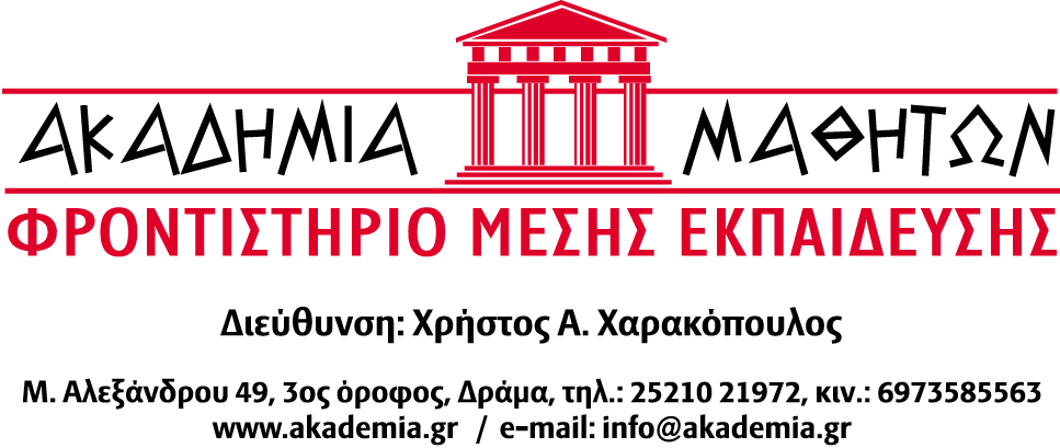 ΦΡΟΝΤΙΣΤΗΡΙΟ Μ.Ε. "ΑΚΑΔΗΜΙΑ ΜΑΘΗΤΩΝ", ΚΔΒΜ1"ΕΠΙΜΟΡΦΩΣΗ", ΜΕΤΑΦΡΑΣΤΙΚΟ ΚΕΝΤΡΟ