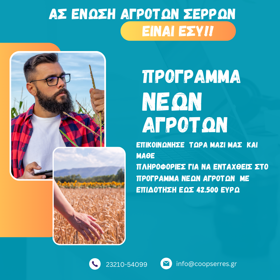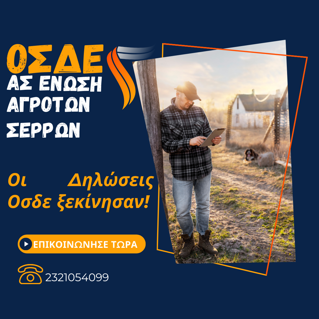 ΑΓΡΟΤΙΚΟΣ ΣΥΝΕΤΑΙΡΙΣΜΟΣ ΣΕΡΡΩΝ,ΣΥΝΕΤΑΙΡΙΣΜΟΙ ΣΤΙΣ ΣΕΡΡΕΣ,ΑΓΡΟΤΙΚΑ ΠΡΟΪΟΝΤΑ ΣΤΙΣ ΣΕΡΡΕΣ,ΑΓΡΟΤΙΚΟΣ ΣΥΝΕΤΑΙΡΙΣΜΟΣ ΣΕΡΡΩΝ,ΕΡΓΟΣΤΑΣΙΑ ΖΩΟΤΡΟΦΩΝ ΣΤΙΣ ΣΕΡΡΕΣ,ΕΡΓΟΣΤΑΣΙΑ ΡΥΖΙΟΥ ΣΤΙΣ ΣΕΡΡΕΣ, ΟΣΔΕ, ΣΕΡΡΕΣ, ΔΗΛΩΣΕΙΣ ΚΑΛΛΙΕΡΓΕΙΑΣ, ΟΠΕΚΕΠΕ ΣΕΡΡΩΝ, ΕΚΚΟΚΙΣΤΗΡΙΟ ΒΑΜΒΑΚΟΣ ΣΕΡΡΕΣ,ΡΥΖΙ ΣΕΡΡΩΝ , ΜΕΤΑΒΙΒΑΣΕΙΣ ΔΙΚΑΙΩΜΑΤΩΝ,Φ.Π.Α,ΛΟΓΙΣΤΙΚΑ ΘΕΜΑΤΑ,ΠΡΟΓΡΑΜΜΑΤΑ ΑΓΡΟΤΩΝ, ΣΕΡΡΕΣ,ΔΗΛΩΣΕΙΣ ΟΣΔΕ2024, ΟΣΔΕ,