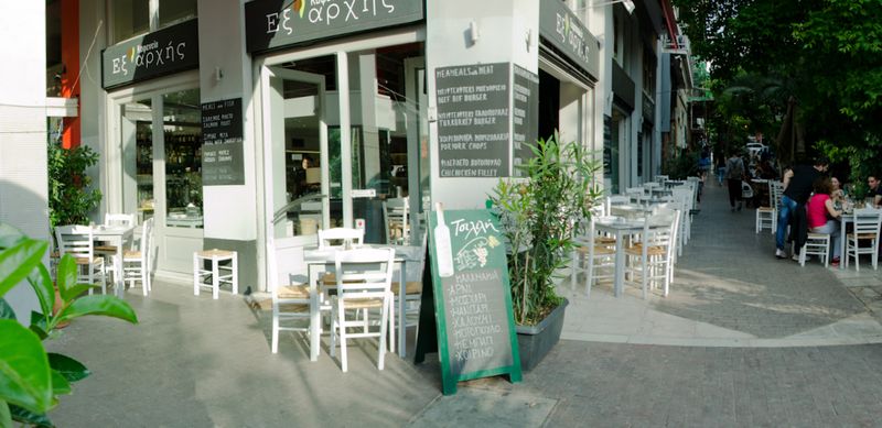Σε μια ιστορική γειτονιά της Αθήνας, την Πλατεία Εξαρχείων, δημιουργήσαμε ένα στέκι για φαγητό, γλυκό και καφέ το ‘’εξ αρχής’’! Ένας all day χώρος πάνω στον πεζόδρομο της οδού Βαλτετσίου με χαλαρή διάθεση και φιλική ατμόσφαιρα, ότι πρέπει για να σας φτιάχνει την διάθεση πίνοντας τσίπουρο με νόστιμες ποικιλίες και δοκιμάζοντας τις ολόφρεσκες σαλάτες και τα ψητά μας ! Κρέατα σε καλαμάκι ( αρνί, μοσχάρι, χοιρινό, κοτόπουλο, κεμπάπ) θαλασσινά σε καλαμάκι (γαρίδες, ξιφίας, σολωμός ), μανιτάρια, χαλούμι μαζί με ένα ποτήρι κρασί .Ολόφρεσκες σαλάτες , με τραγανά λαχανικά και σάλτσες με λεπτή γεύση, πίτες ολικής αλέσεως, κυπριακές πίτες με καλαμάκια, ολόφρεσκες πατάτες κομμένες στο χέρι, μυρωδικά, βότανα ελαιόλαδο…..και όλα αυτά μόνο ελληνικά!