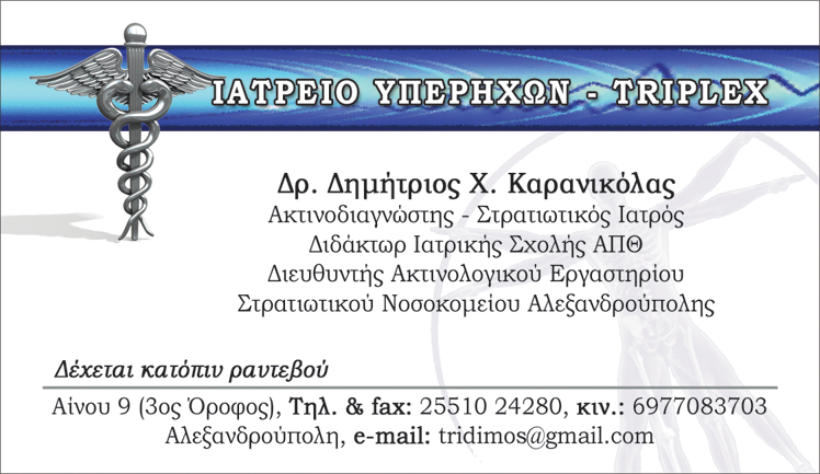 Δρ. Δημήτριος Χ. Καρανικόλας * Ακτινολόγος