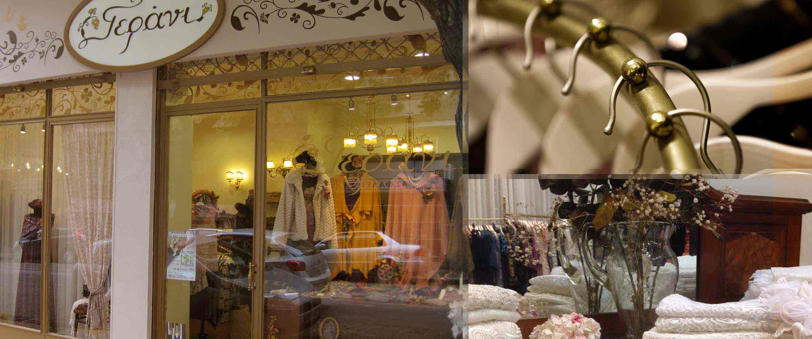 Στο ξεκίνημά του το Γεράνι, με επιγραφή ζωγραφισμένη στο χέρι από την ίδια την Βάλια, συμβαδίζοντας με το πνεύμα της εποχής συγκέντρωνε ρούχα χειροποίητα, ολομέταξα από το Σουφλί, ολόμαλλα πανωφόρια, φορέματα βαμβακερά, ινδικά. Οι υφάντρες της Ελένης Λοϊσίου ύφαιναν στην Ηρακλείτου στους αργαλιούς τους τα υπέροχα μοναδικά σύνολα. Πολύ συχνά η συλλογή των ρούχων εμπλουτίζοταν με ιδιαίτερα κοσμήματα και αξεσουάρ από ταλαντούχους σχεδιαστές εκείνης της εποχής τα οποία ήταν μοναδικά και γίνοταν ανάρπαστα.