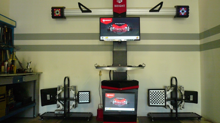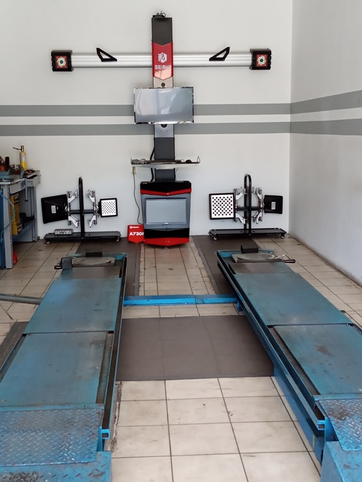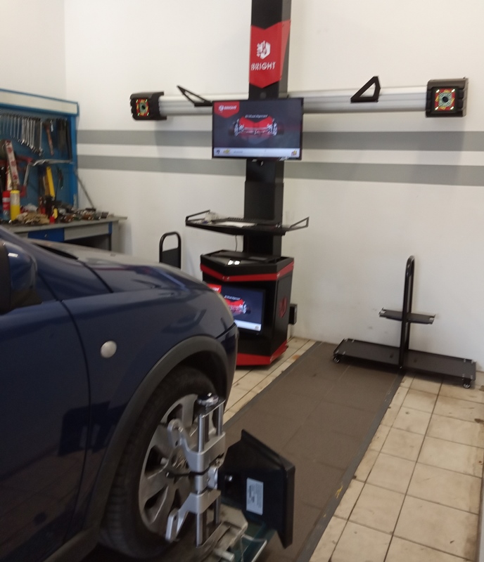 Στην παροχή υπηρεσιών μας, αιχμή του δόρατος αποτελεί η ευθυγράμμιση. Για το λόγο αυτό το μηχάνημα της ευθυγράμμισης έχει το δικό του χώρο αλλά και τη δική του ποιότητα. ΠΡΩΤΟΙ εμείς φέραμε το μηχάνημα ευθυγράμμισης BRIGHT A730P τριών διαστάσεων (3D) που παρέχει εικόνα παραλληλότητας (αξόνων και τροχών), απόστασης (ίχνος) τροχών κατάσταση πλαισίου. Αυτό δίνει την δυνατότητα στον τεχνικό να «σκανάρει» την κατάσταση του αυτοκινήτου και να προβαίνει σε στοχευμένες επεμβάσεις. (Δείτε φωτό και video). Φυσικά η παροχή υπηρεσιών μας περιλαμβάνει ζυγοσταθμίσεις, επισκευή ζαντών και βαφή τους, επισκευή ελαστικών, αλλαγή σε δισκόπλακες – τακάκια, αλλαγή σε μπροστινά συστήματα διεύθυνσης (ψαλίδια - ακρόμπαρα).
