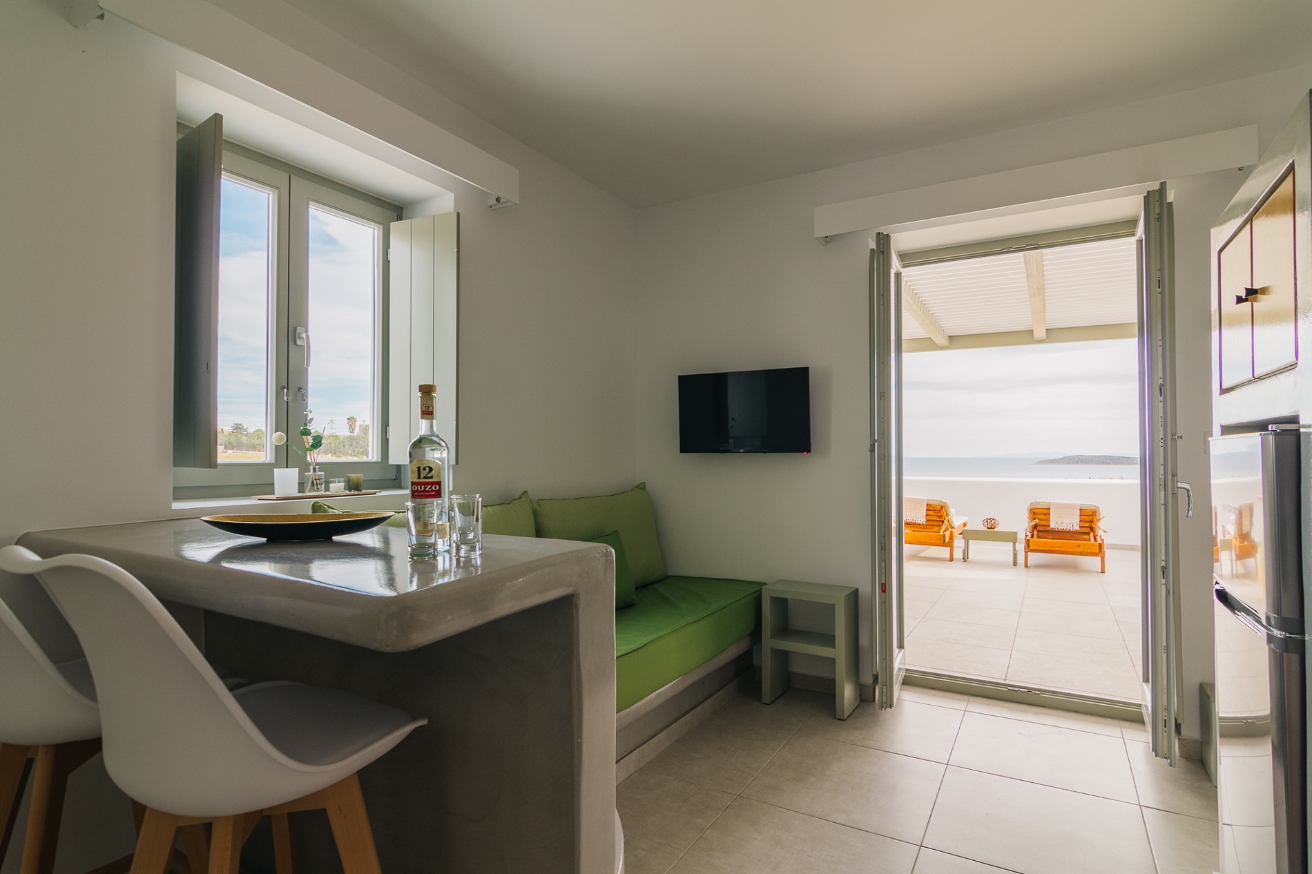 Εκτός από την πισίνα και το μπαρ, μπορείτε να απολαύσετε τον καφέ, το φαγητό ή το ποτό σας μέσα στα διαμερίσματα.