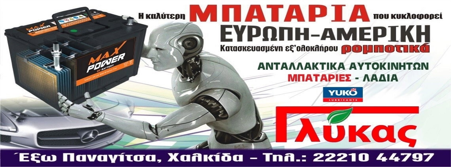 ΓΛΥΚΑΣ ΑΛΕΞΑΝΔΡΟΣ Ι.Κ.Ε. ΑΝΤΑΛΛΑΚΤΙΚΑ ΑΥΤΟΚΙΝΗΤΟΥ ΜΕΤΑΧΕΙΡΙΣΜΕΝΑ/ΚΑΙΝΟΥΡΙΑ ΙΜΙΤΑΣΙΟΝ - ΜΠΑΤΑΡΙΕΣ - Λ