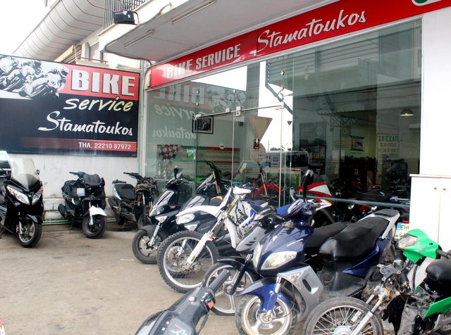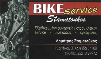Ο έμπειρος μηχανικός, Δημήτρης Σταματούκος, εδώ και δέκα χρόνια φροντίζει για το service των μοτοσυκλετών στο συνεργείο του "BIKE SERVICE" Πρόκειται για ένα εξειδικευμένο συνεργείο μοτοσικλετών με σύγχρονα μηχανήματα που αναλαμβάνει το service, τις βελτιώσεις αλλά και το test εγκεφάλου μοτοσυκλετών. Η πολυετή εμπειρία του Δημήτρη Σταματούκου και η άριστη εξυπηρέτηση του προσωπικού κερδίζουν αμέσως την εμπιστοσύνη του κάθε πελάτη., ΧΑΛΚΙΔΑ
